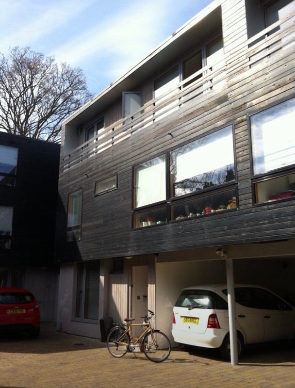 It’s a three-storey, semi-detached townhouse in a private, gated mews. There are 5 other houses assembled around a courtyard. There is a (unoccupied) carport for our house if you need somewhere to park, visitor parking is available for guests, and there are several bike racks.