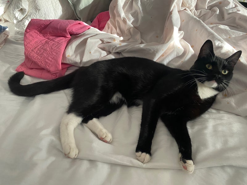 ….her 1.5 year old tuxedo cat named George! He is a rascal but pretty adorable (especially when tired!). He is very much part of the household so please don’t apply if you don’t like/are allergic to cats!