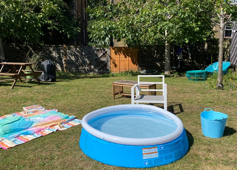 We are very lucky to have a massive garden, shared with the neighbours, with three separate washing lines, a BBQ, veggie patches for each house, and several picnic tables and chairs. Amelia also has an inflatable pool that we made good use of in the summer! Our neighbours maintain the garden but anyone can access the lawnmower etc too.