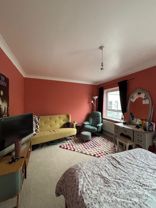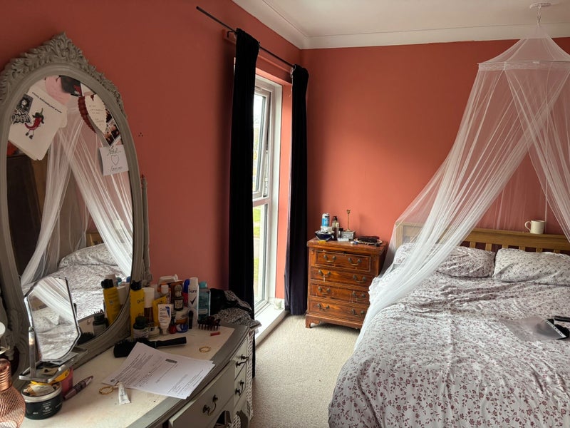 Living in the house with 2 friendly babes, both work Monday - Friday, we are early risers and are not looking for a party house mate. We have a bi weekly cleaner and keep the house to a high standard. Very easy going housemates, who treats our home with respect. Lots of storage and space. We have a TV licence and a dishwasher 😜 We are social people but we also enjoy our own time and respect that others also do. We're looking for another housemate who works full time, but not from home (one or two days is fine but not all week). There is a parking space outside and also there is free parking available nearby. The furniture in the room will change, but still lots of storage (I'm afraid the sofa and the chair will be going with the old housemate)