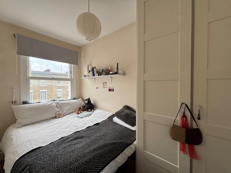 Hi! We have a double room available in our three-bed flat in Camberwell/Brixton. The room is a bright, sunny, and cosy space in a spacious two-floor flat. The room is definitely very small, but has a built in wardrobe and has cheap(er) rent.