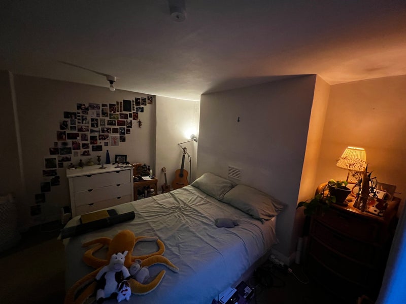 Spacious double bedroom with glass doors to our quiet garden. You’ll be living with Léa (28) and İlayda (25), both professionals. Please note that this is a short term let, just available for March. The room comes furnished with a bed, wardrobe, chest of drawers, bedside table, and mirror.