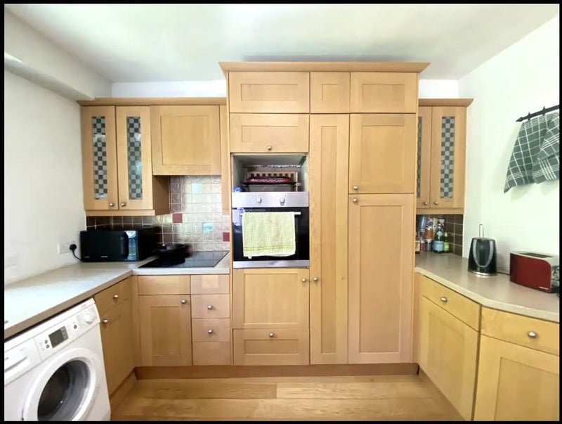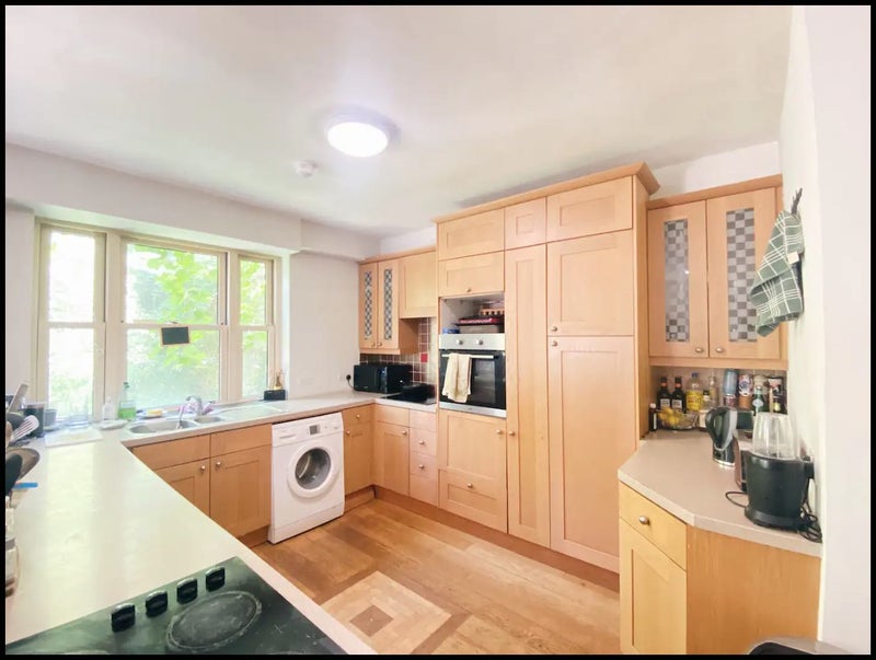 Spacious room adjacent to the shared kitchen, Furnished with 1 double bed, wardrobe, chest of drawers.