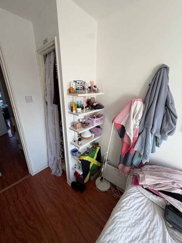 Room has a built in wardrobe with two rails. Flat has lots of storage with a ground floor storage unit, a loft and a storage cupboard in the bathroom & coat/ shoe racks in hallway. Flat has two balconies, spacious living room and a separate kitchen diner. Balconies get such good sunlight & very well lit flat.