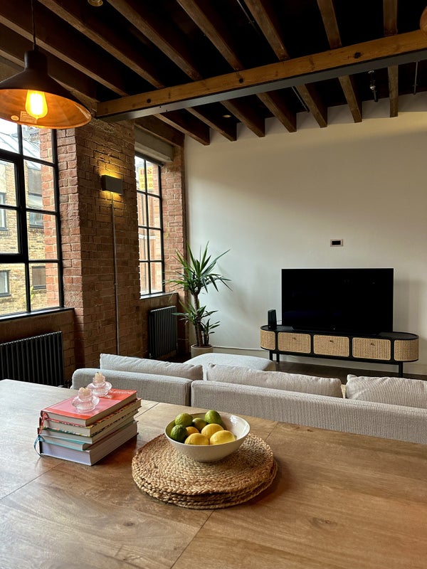 Fully furnished and decorated 2 bed, 2 bath warehouse flat in Camden, available from March.
