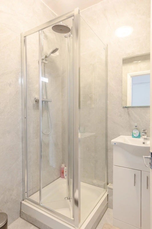 Modern bathroom and toilet furnished to high standard.