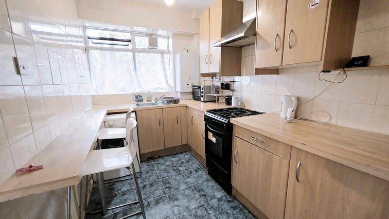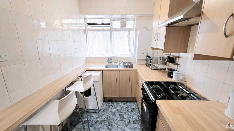 * large fridge, plus usual kitchen appliances e. g. microwave, toaster, kettle, new plates cutlery mugs etc.