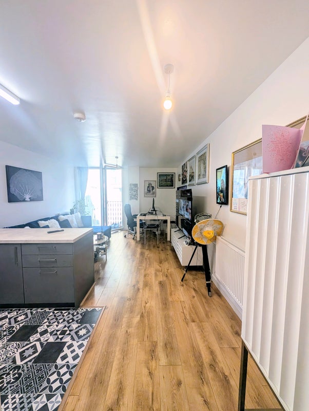 I have a spare room in my flat for rent. It's an ensuite double room with king size bed. 2 wardrobes and smart TV. There's also a desk in the room.