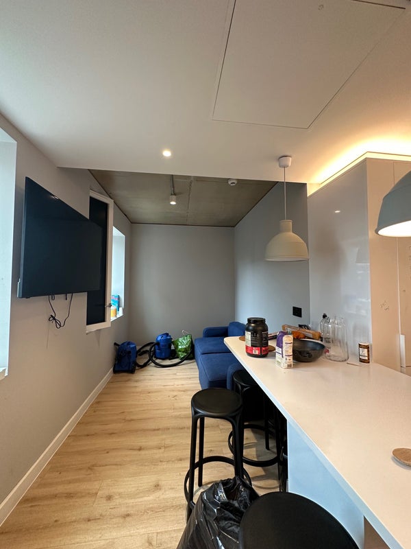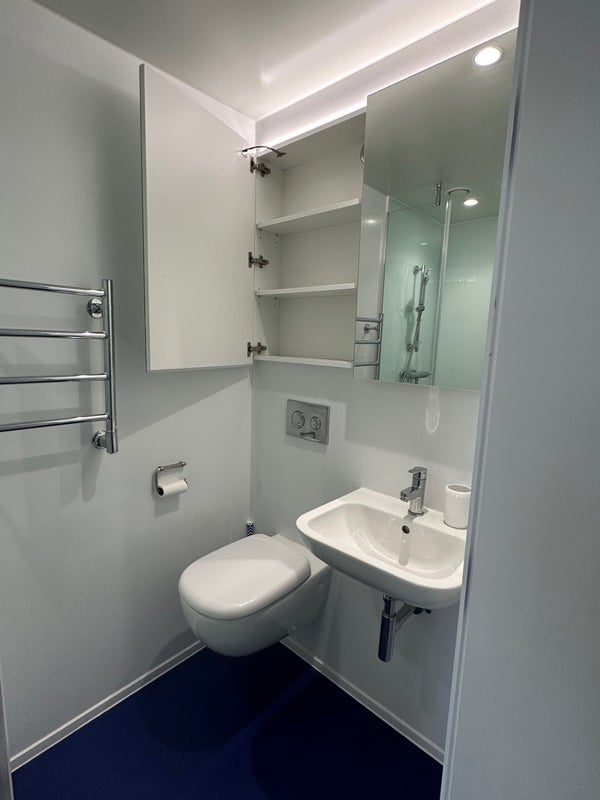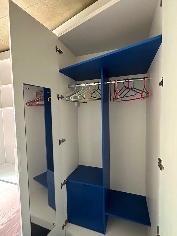 The accommodation is great, it’s got two common rooms, a library, basketball pitch, pool tables, outdoor common area, mini golf, gym and a cinema room! The kitchen is commonly shared with other girls- all lovely! The room is an en-suite with plenty of storage under the bed and cupboard.