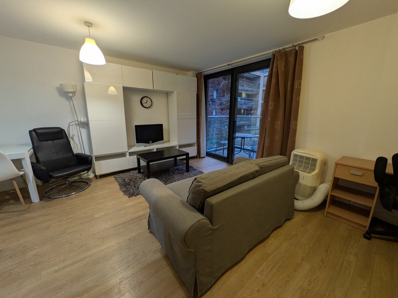 It's a large double bedroom with an ensuite. It's a very modern 1st floor flat in a building complex with secure bike storage. There is a large living room and balcony that overlooks the courtyard (so no street noise!).