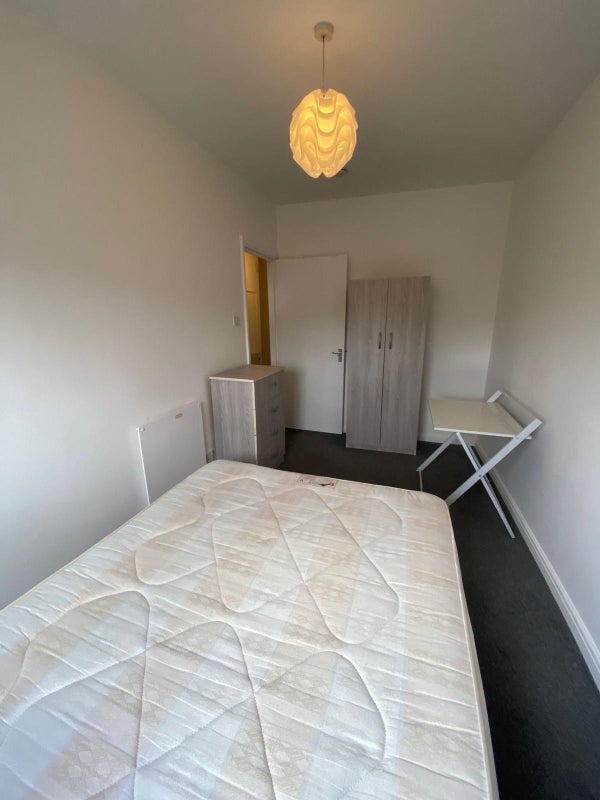 The double room is bright and airy with plenty of natural light. It comes furnished with a comfortable double bed, wardrobe, chest of drawers. – perfect for working from home. There’s good storage and space to make it your own.