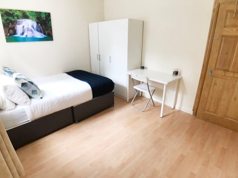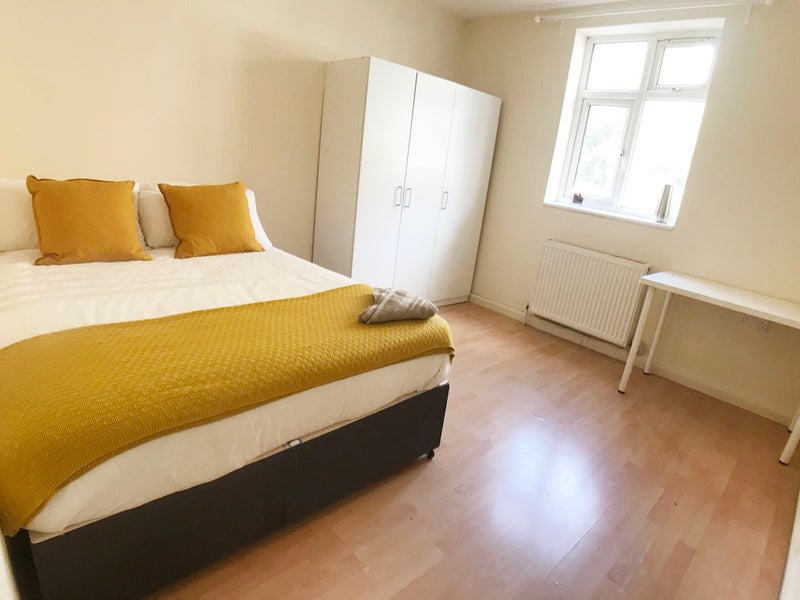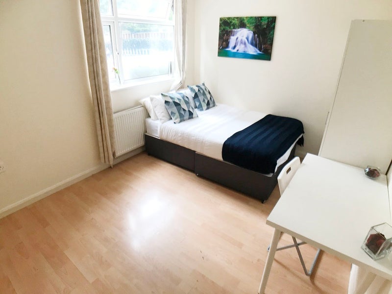 A tidy and relaxing room in a peaceful flat. Supermarkets, stations, and shops are just around the corner.