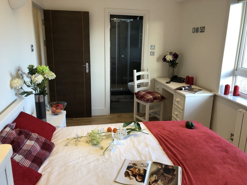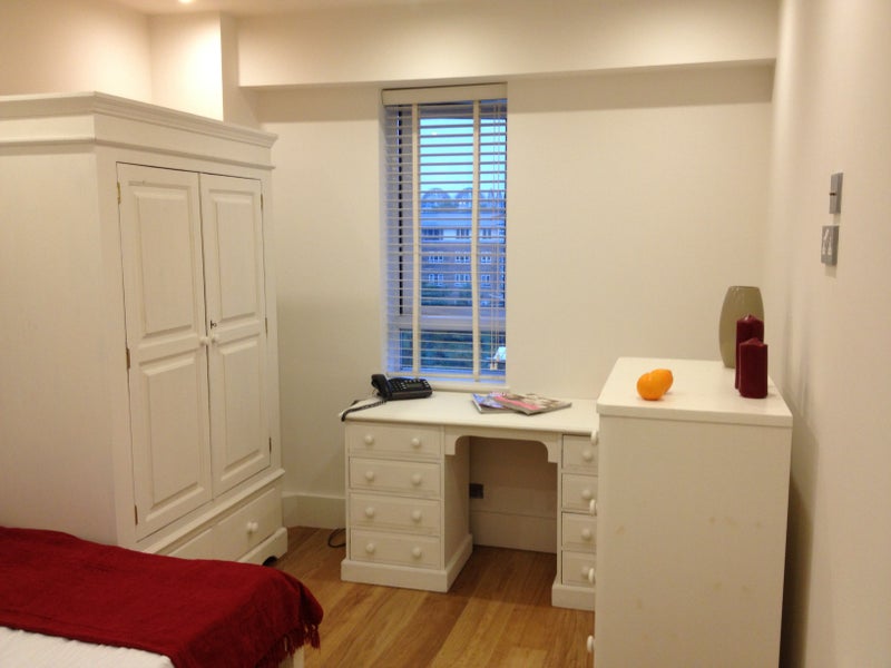 The bedrooms are a good size with double bed, wardrobe, desk, chair, and chest
