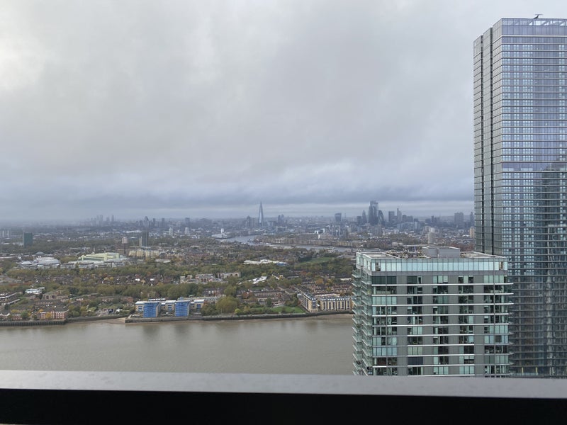 The flat is situated on the 35th floor offering stunning views of the Thames river and the skyline of London, including the Shard, Tower Bridge, London Eye.