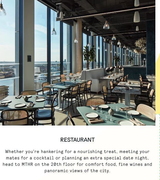 - Rooftop restaurant and bar on the 20th floor
