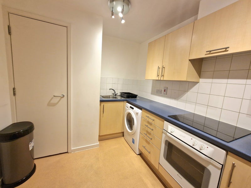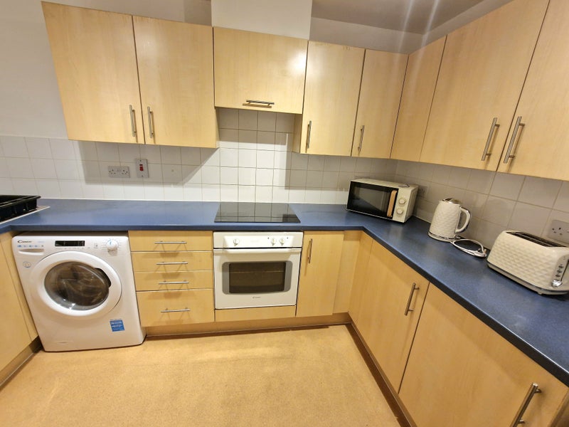 Modern kitchen: Fully equipped with fridge/freezer, washer/dryer, oven, and cooker.