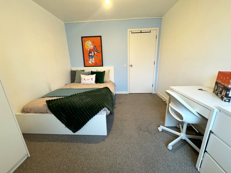 Comfortable living: Freshly furnished bedrooms with bed, wardrobe, chest of drawers, desk, and chair.