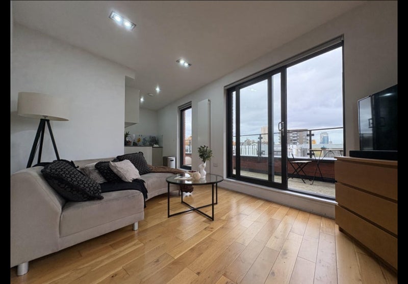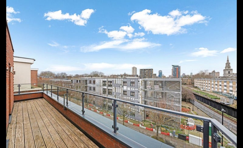 The heart of the apartment is its expansive open-plan living area, bathed in natural light thanks to floor-to-ceiling windows that seamlessly connect the indoors with the outdoors. A sleek, modern kitchen, complete with integrated appliances fits beautifully into the space. A large wraparound private terrace showcases views of Canary Wharf and Poplar, perfect for entertaining or relaxing. Both bedrooms are generously proportioned doubles.