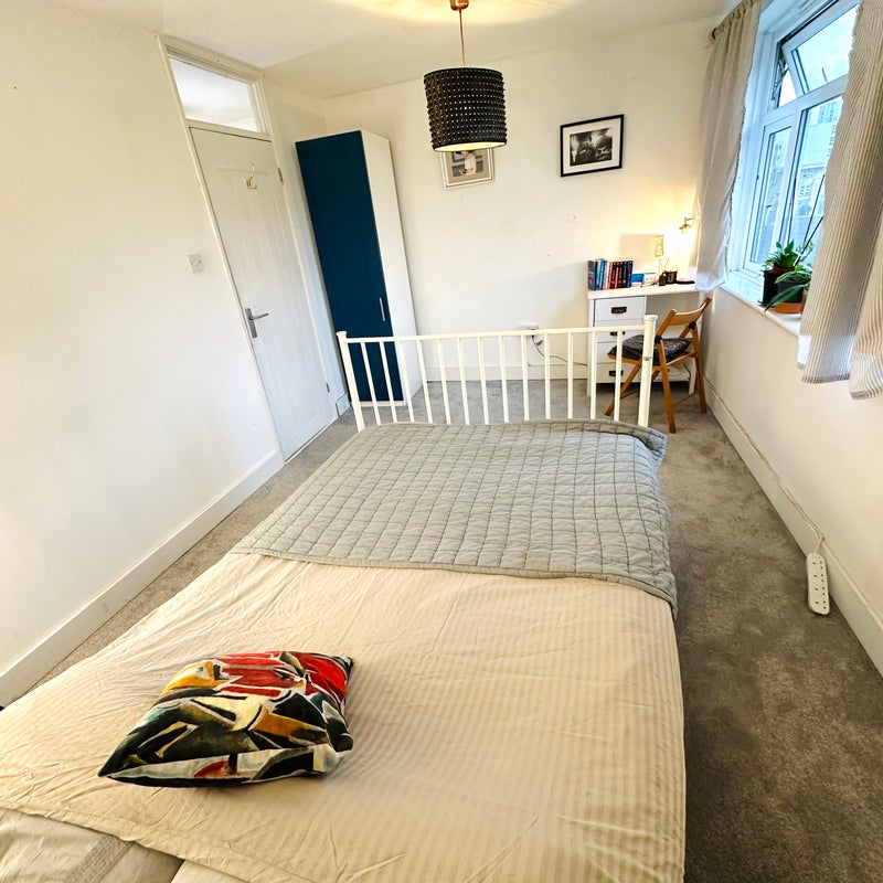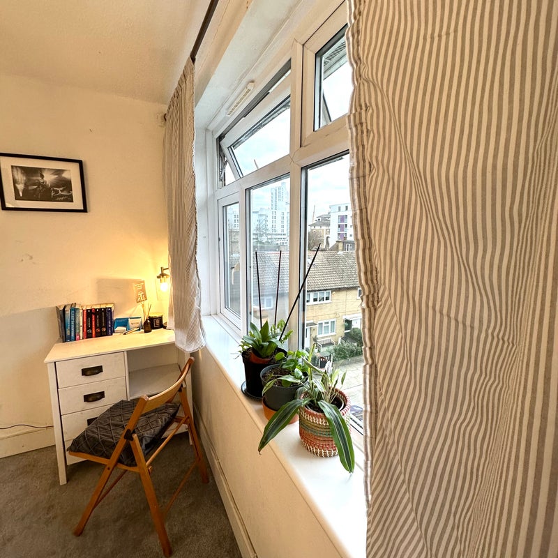 Bright furnished double room available in an owner-occupied flat in Canary Wharf, 5 minutes’ walk from South Quay DLR.