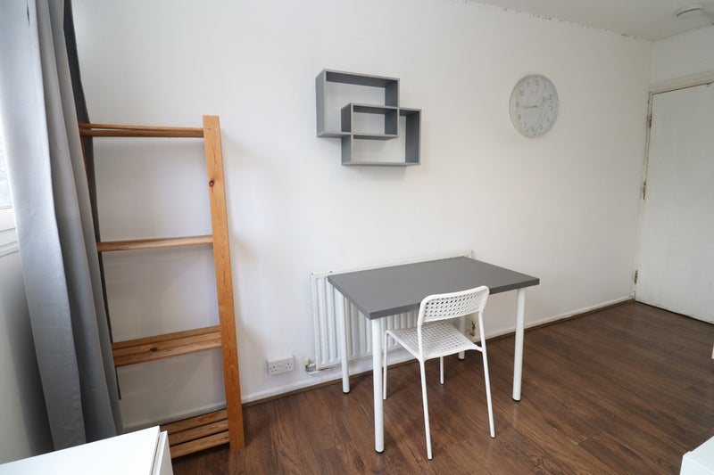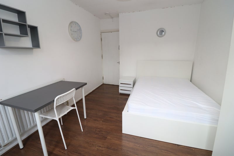 The bright and comfortable room comes fully furnished with a double bed 🛏️, wardrobe and ample storage space 👗, and essential furniture