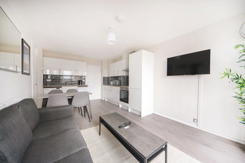 The shared open-plan lounge, dining, and kitchen area is perfect for relaxing or socialising. The modern kitchen comes equipped with a washer-dryer, dishwasher, microwave, oven and hob, and fridge-freezer. A separate toilet adds extra convenience for flatmates. Communal areas benefit from bi-weekly courtesy cleaning, keeping the flat fresh and welcoming.