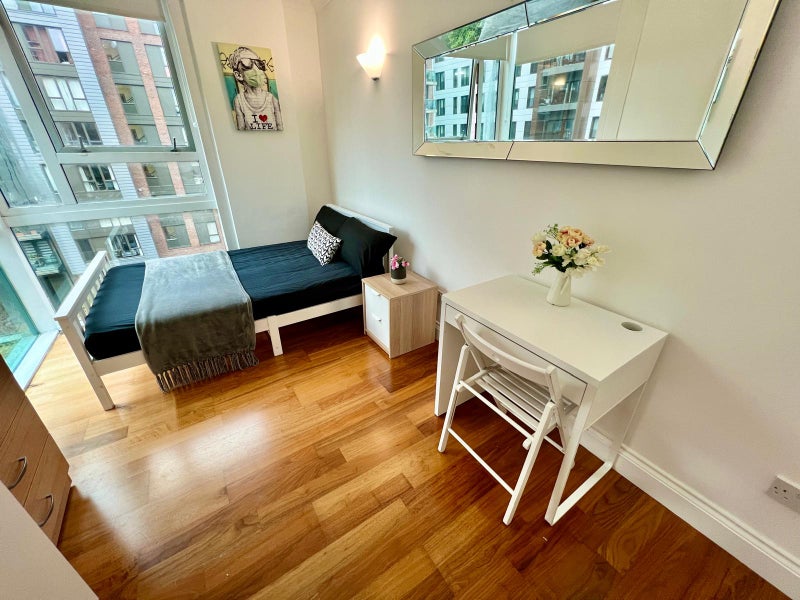 A bright furnished double room available now in a well-presented 4-bedroom flat, offering comfortable shared living in a prime Docklands location.