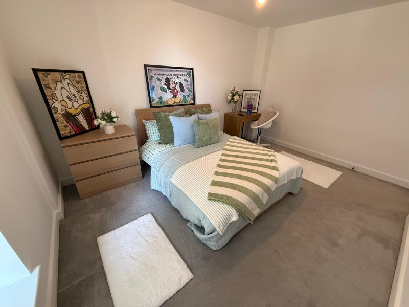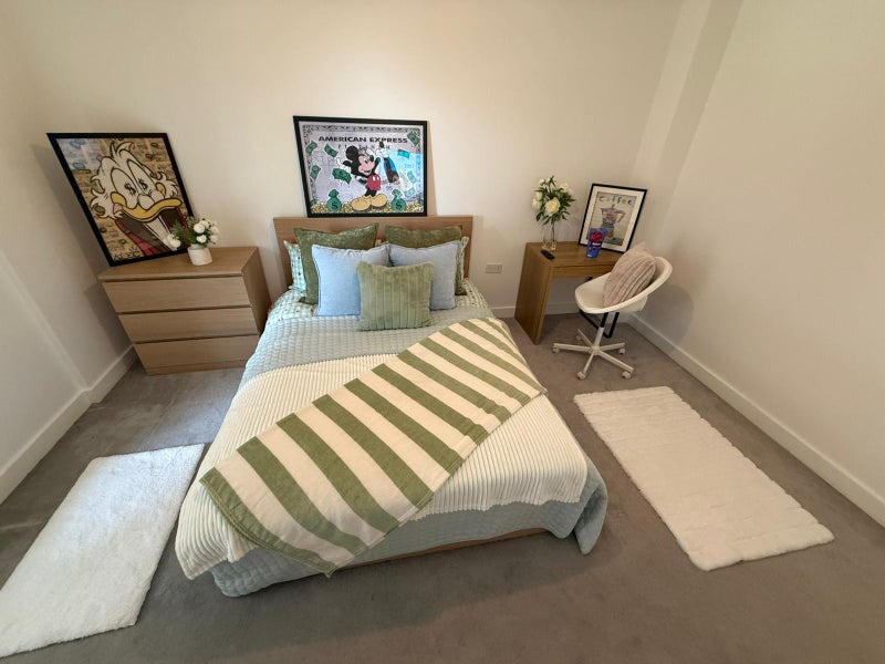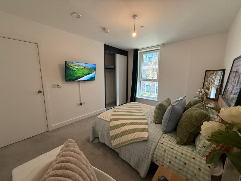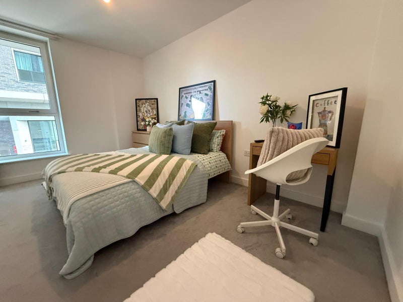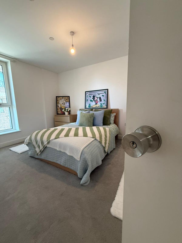 A brand new, freshly prepared room in a modern Canary Wharf development, ideal for professionals looking for a clean, high-quality living space.