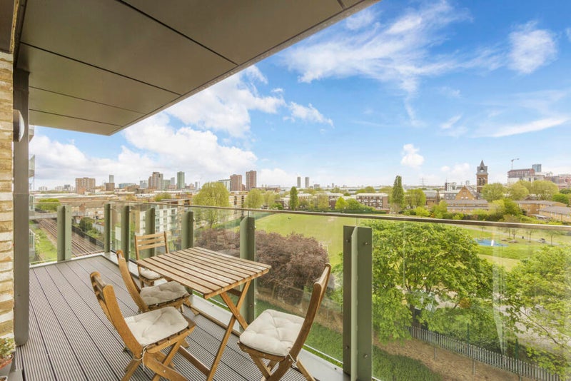 Rent incudes access to a residents' gym and a roof terrace.