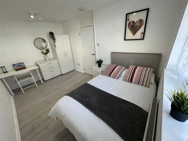 A beautiful, fully furnished master bedroom is now available in a newly refurbished house, finished to a very high standard with all brand-new furniture.