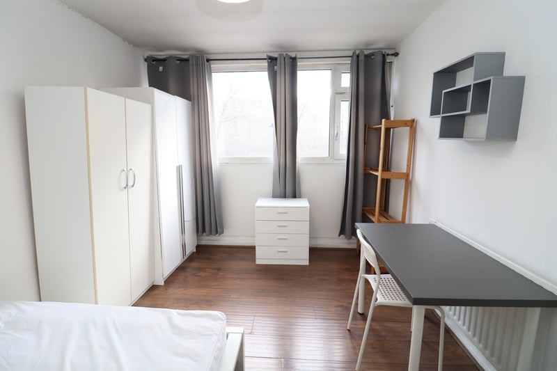 A bright and fully furnished double bedroom is available for single occupancy in a well-presented four-bedroom, one-bathroom house-share.
