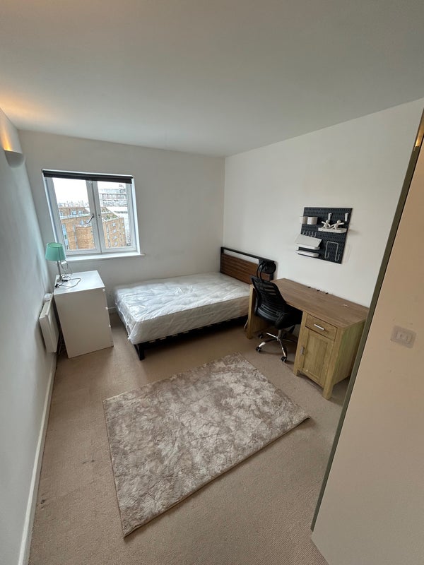 A bright and well-sized double room is available in a friendly and tidy house share in E14 3SY. The property is shared with two other professional tenants, offering a comfortable and respectful living flat share.