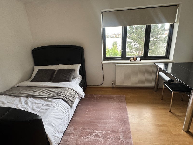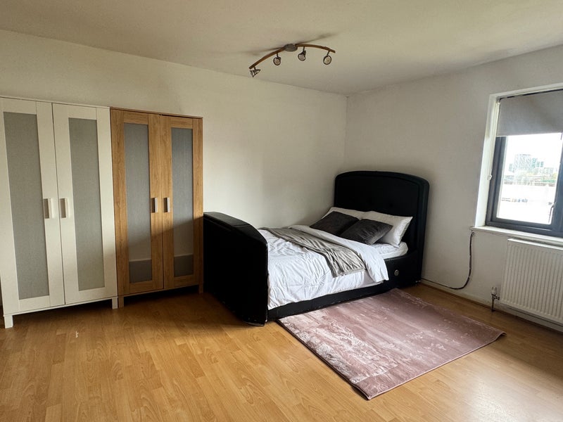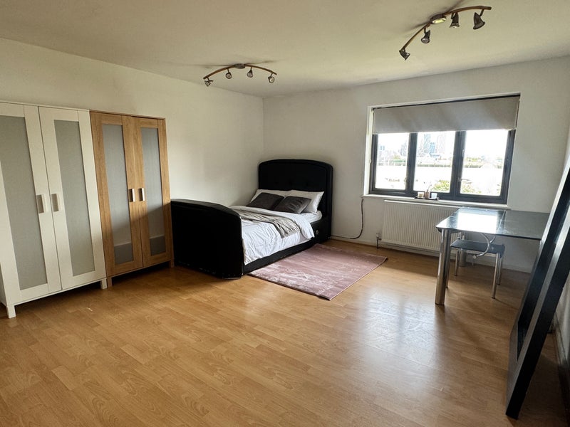 Spacious and bright double room available in Canary Wharf (E14 ). The room is fully furnished and offers a clean, modern living space with plenty of natural light from a large window.