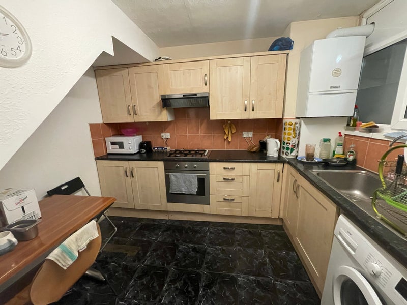 * Appliances including microwave, kettle, toaster, washing machine, and fridge