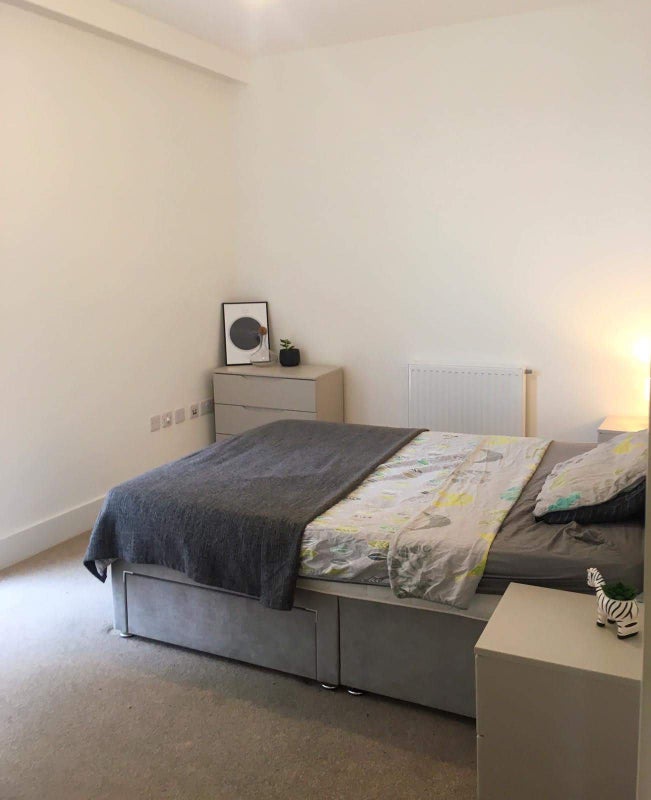 An en-suite double bedroom in a new build 2-bed, 2-bath flat directly opposite Canning Town station.