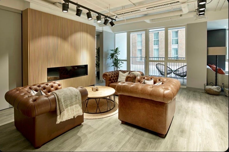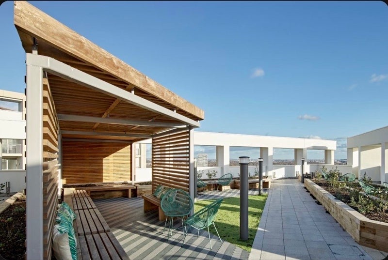 Ensuite bedroom in a modern 2b2b flat available from May 1st. Lease ends January 16, 2027 but early termination is possible with two months’ notice. The building includes a residents’ gym, lounge area, co-working space with meeting rooms, games room, and a roof terrace. There is secure parcel storage, bike storage, and an onsite management team. WiFi is available in the communal areas.