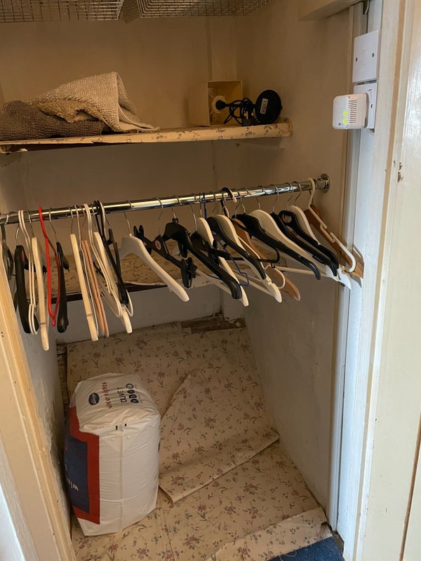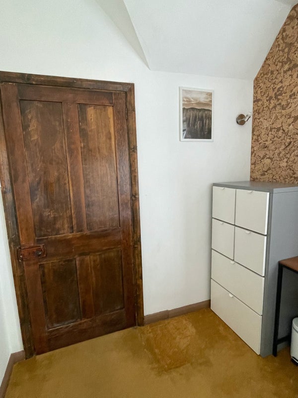 The room is cleaned and newly furbished, there's storage space under the bed and a cupboard outside the room with hangers for coats etc.