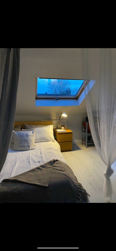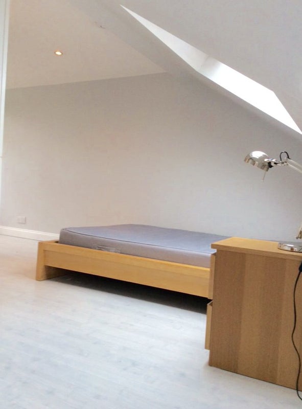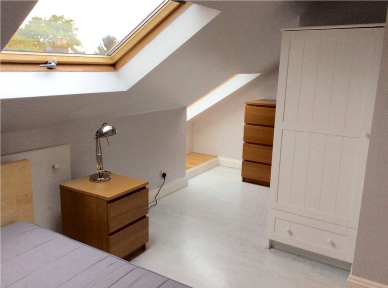 This bright and spacious studio flat is located in the loft of a Victorian property, offering a peaceful and private living space perfect for a single professional.
