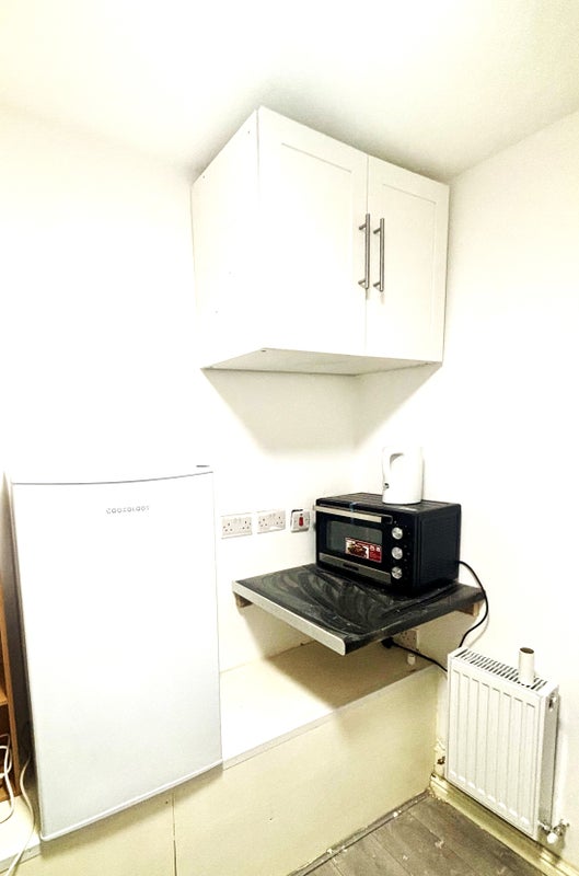 Small studio: fully furnished, with kitchenette and en-suite bathroom. Washing machine included.