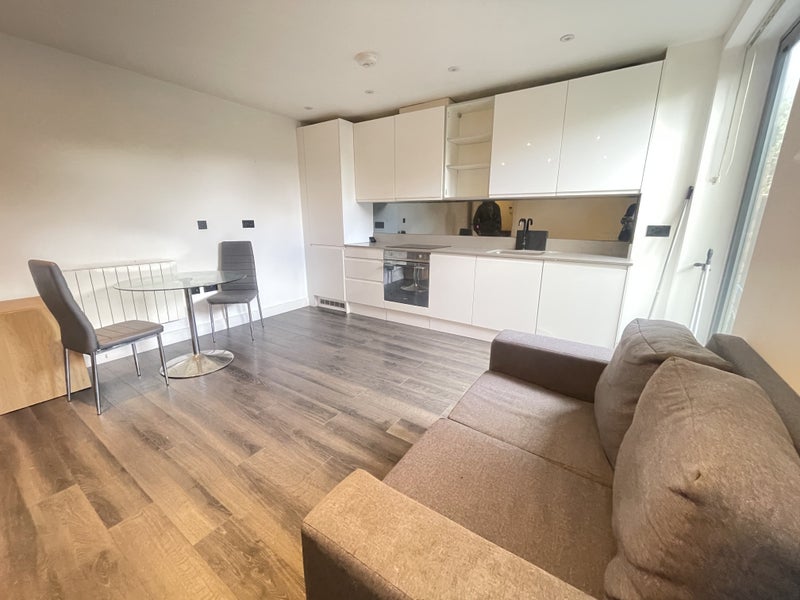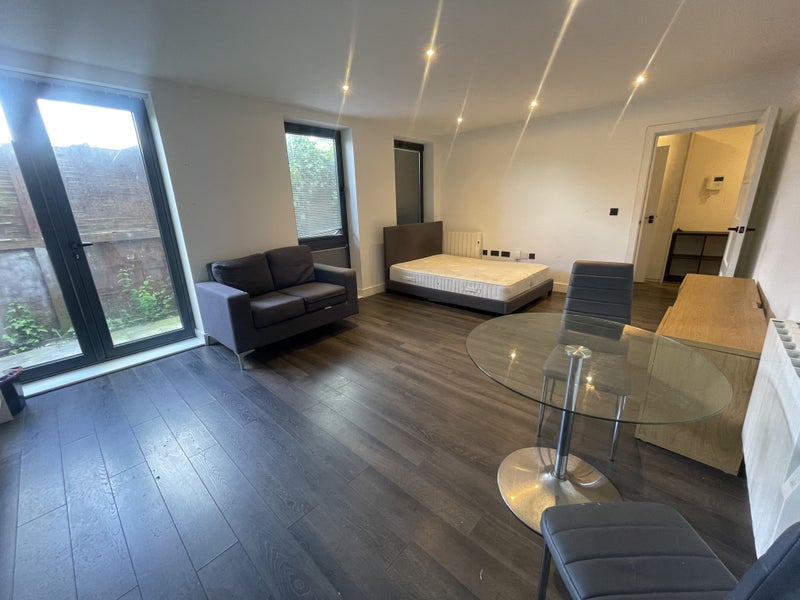 Fortress Homes is pleased to offer a professionally designed & decorated large studio with a patio. Fully fitted modern kitchen, well-proportioned living space, tiled bathroom, double-glazed windows.