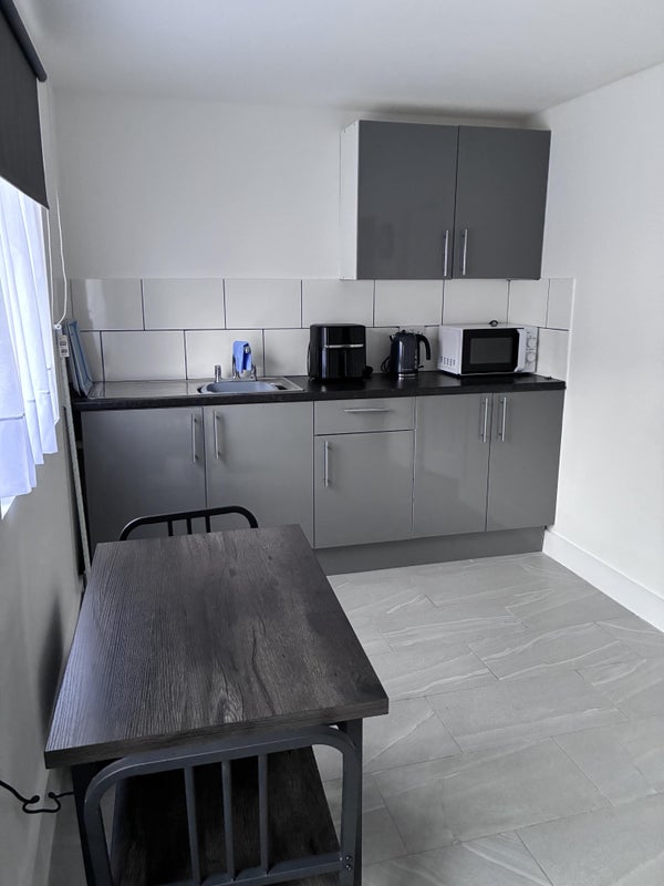 A lovely newly refurbished one bedroom self contained studio flat with separate rooms which has it’s own private gate. A small patio area available in the garden for warmer months. Free WiFi is included in your stay.