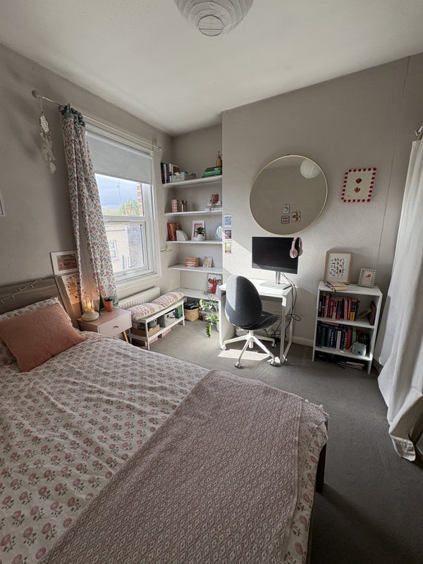 Furnished double room available in Chiswick sharing with 3 girls who are all super friendly and welcoming and work a mixture of office and wfh. It's a great place to live with the loveliest housemates and made even better by the sunny roof terrace to enjoy in the Summer. It’s a large house set over 3 floors with a separate shared living room & kitchen along with a bathroom and separate toilet shared between 3 housemates on the middle floor.