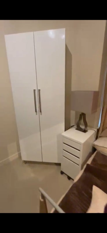 The room itself is furnished with a double bed, a wardrobe, a closet and a decent size table. Ample storage space and ideal for working from home.