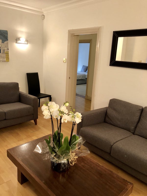 This stunning flat has a patio and living room (undergoing refurbishment) and is in a gated building.