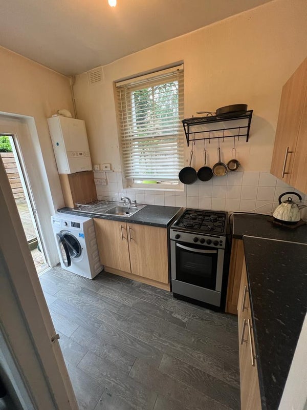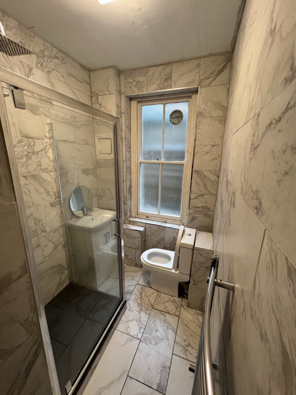 The room features a double-sized bed, dining suite, plenty of storage, and kitchen area with a fridge. Rent is £1,150per month, covering all bills (council tax, utilities, and superfast Virgin Media WiFi). You’ll also enjoy a fortnightly cleaner for communal areas and access to a shared washing machine.