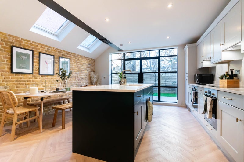 - Stylish 'industrial style' fully-equipped dove grey and green kitchen with modern appliances (including dishwasher, double ovens, double fridge/freezers etc etc).