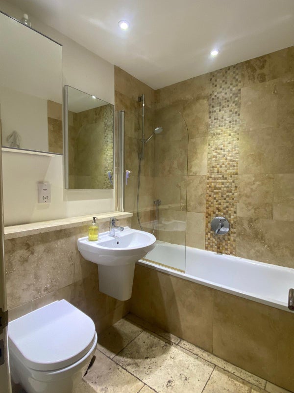 The rooms are a good size, and the flat has a spacious shared living area, kitchen, and bathroom.