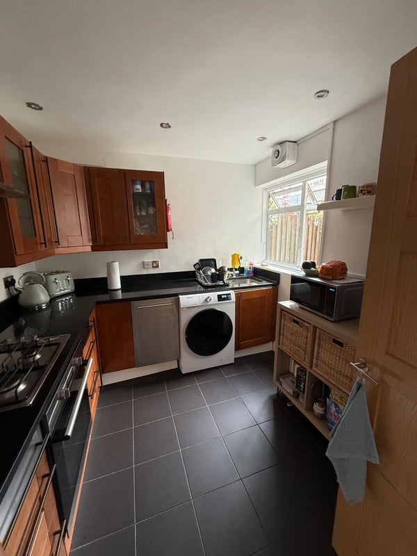 Semi-furnished with a bed frame, mattress and wardrobe that has tons of storage, plus a big window that brings in loads of natural light 🌞 I’m considering selling my bedside table and chest of drawers but that’s TBD. The rest of the flat is fully furnished by the girls, so it already feels like home. You’ll be sharing one bathroom.
