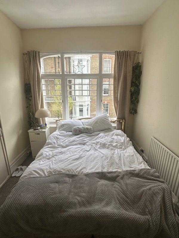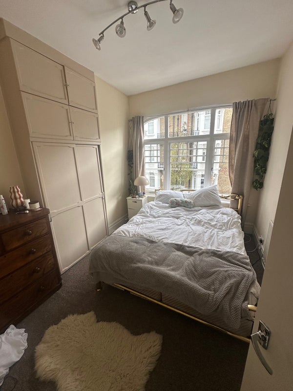 Hi all, I’m a young professional (barrister) looking for a roommate from the beginning of May. The room has a large bed (slightly bigger than a double) and large sash windows with great lighting. It doesn’t currently have a desk but would likely fit one. I’ve lived in the flat for about 18 months and love it and the area. I’m friendly, clean and chilled - looking for the same. Let me know if you have any questions, happy to answer!