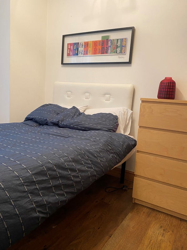 We have a lovely spacious double room in our fantastic 5 bedroom flat. The flat is in a great location with good transport links. It is suitable for one person only (sorry, we don’t accept couples). The room comes fully furnished with double bed, big wardrobe, chest of drawers, table, chair, pictures, mirror, shelves, etc. We Do Not provide the bedding such as (pillows, duvet, duvet cover, fitted sheet).