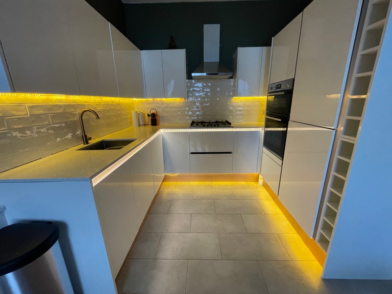 Beautiful fully fitted modern kitchen with in-built dishwasher, 5 ring gas hob, washing machine, built-in oven and large fridge freezer